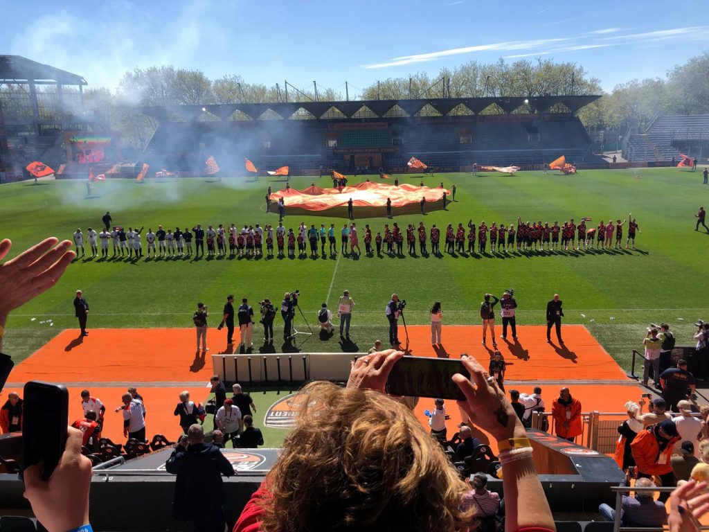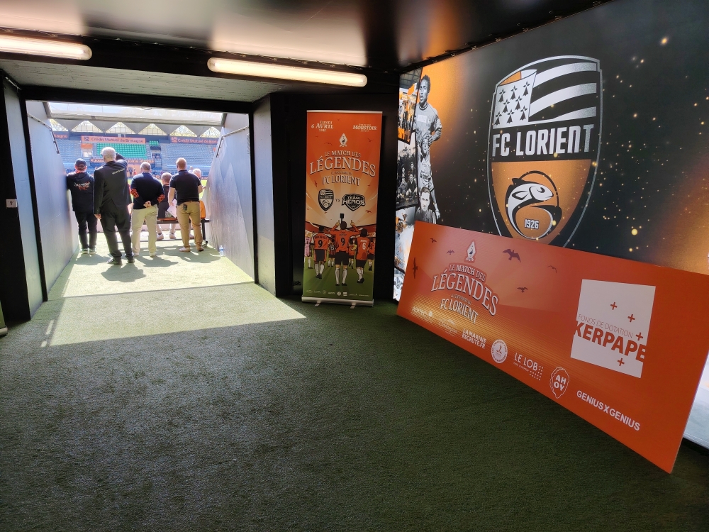 Le 6 avril dernier, à l’occasion du centenaire du FC Lorient, le stade du Moustoir a accueilli le Match des Légendes, un événement fort en émotions, placé sous le signe du partage, de la transmission et de la solidarité. Le Fonds de dotation Kerpape a eu l’honneur d’y être associé, aux côtés du club et de nombreux participants réunis pour cette journée exceptionnelle.